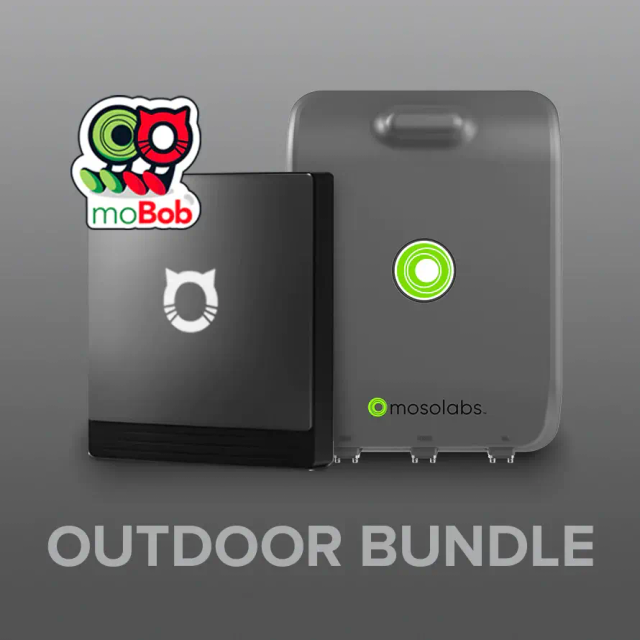 Outdoor Bundle: Bobber 500 gateway, MosoLabs Outdoor CBRS Small Cell; Self-installation with single power over Ethernet (PoE) cable to radio.